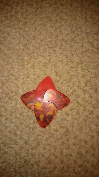 General, selecciones de la guitarra están hechas de plástico, pero algunas pueden hacerse de madera o metal, aunque el plástico es el más común. El material es muy importante ya que contribuye a cómo sonará el instrumento cuando se toca. Creo que un punzón metálico le da un sonido más claro, pero selecciones de plástico son los mejores a utilizar ya que son más suaves en las cuerdas, baratas y abundantes en tiendas de música. Si, sin embargo, te apetece experimentar con la selección diferentes materiales, ¡ adelante!