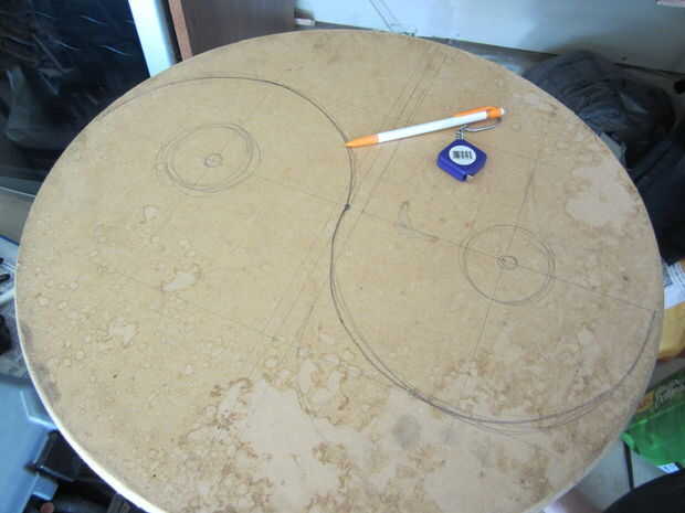 Decidí lo que mejorar la línea media, así como ayudar con la pintura, a la ruta a la brecha que sirve para dividir el ying yang. Este paso no es necesario si tienes mejor control de la pintura que hago. Adecuado para mi dremel y nos dispusimos a tallar. Comenzó en el centro y siguió una línea, luego volvió a la mitad y había seguido la otra línea. El tablero de madera aglomerada deja un poco que desear en eso en su mayoría desgastados en lugar de corte; Que terminé tener que definir un poco mejor con un destornillador y un papel de lija.