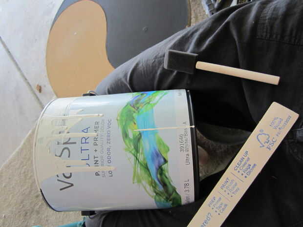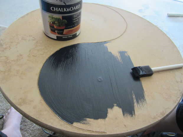 Encontré la mejor manera de pintar con pintura de pizarra es hacerlo en muy finas, incluso capas. Utilicé un pincel de espuma simple desde que tuve un montón de las gallinas alrededor. Termine aplicando 4 capas, pero eran finos y seca rápidamente. Estoy seguro que una búsqueda rápida de google puede arrojar luz para una mejores maneras de aplicar la pintura de pizarra, pero estoy contenta con mis resultados.