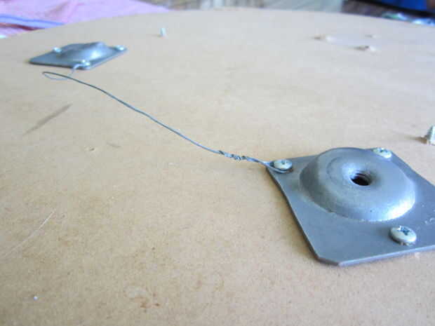 Suerte y ya tuve hardware en la parte posterior de mi Junta, pero es fácil de configurar un cuadro colgante de alambre con un par de tornillos. Sólo usé los tornillos que se quedaron atrás.