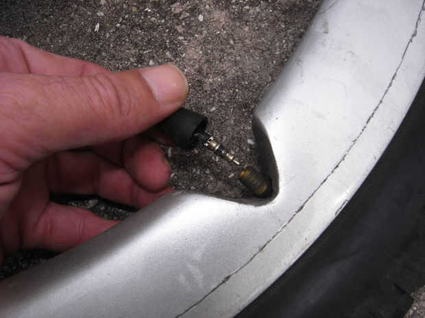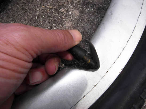 Simplemente usar algo pequeño que cabe en el vástago de la válvula (destornillador pequeño - cuchillo de mantequilla)