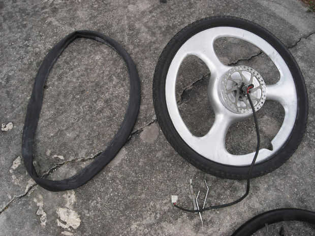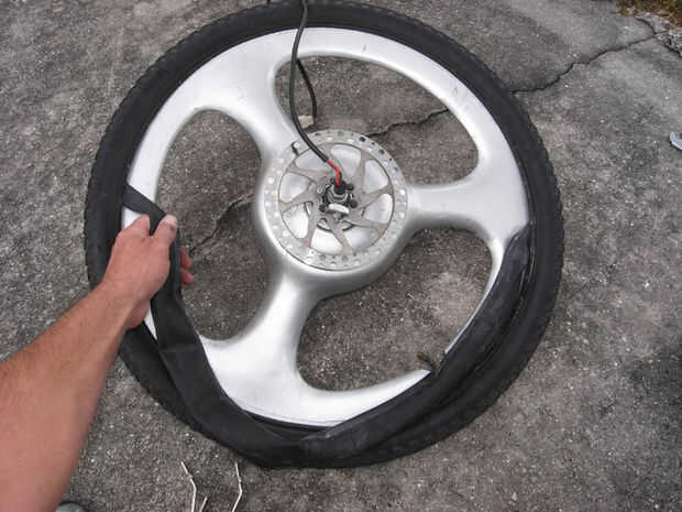 Hale el tubo hacia fuera desde dentro del neumático