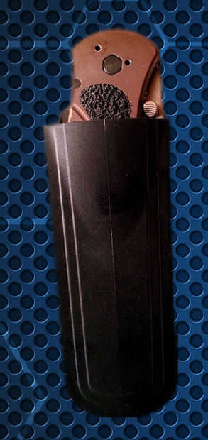 Tenía un soporte de la cuchilla con la cubierta de tipo velcro, pero desgasta el velcro. Él fue a buscar a una nueva bolsa de cuchillo y descubrió su cuchillo encajan perfectamente en el soporte de la revista solo 71-2-2 de Safariland (uso principal es para la celebración de compartimientos de la pistola).