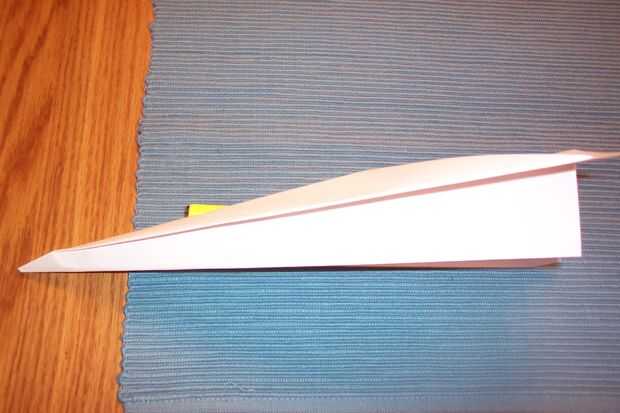 este es uno de los mejores aviones de papel que he hecho. Es moderadamente sencillo doblar y un volante muy bueno. Es un planeador suave con un frente "plano" por lo que si se cuelga alguna vez el frente no arruga para arriba como lo haría en un