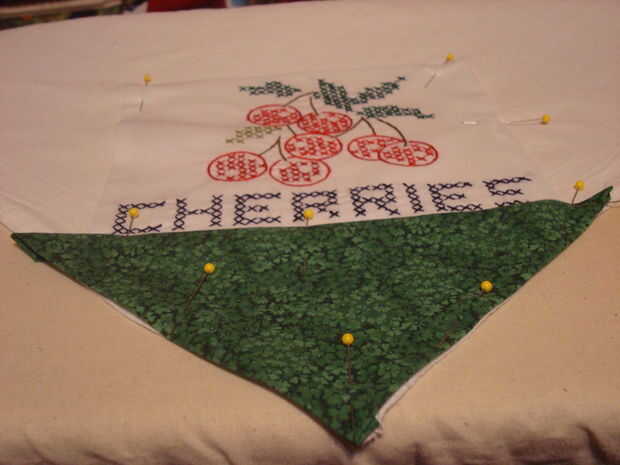 Para el círculo cubrió y cosida la frontera a la toalla primero;  cubrió el círculo acabado a la toalla y cosió el borde y el círculo a la toalla.