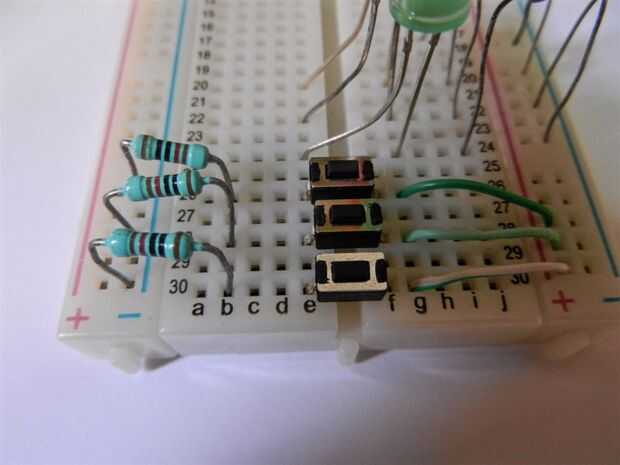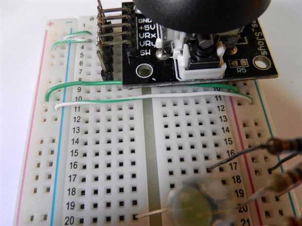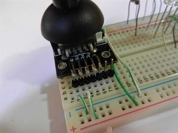 Compré esta placa y construir el circuito mostró en las fotos. Aviso que tengo 2 potenciómetros (x e y), 3 pulsadores y 3 leds.