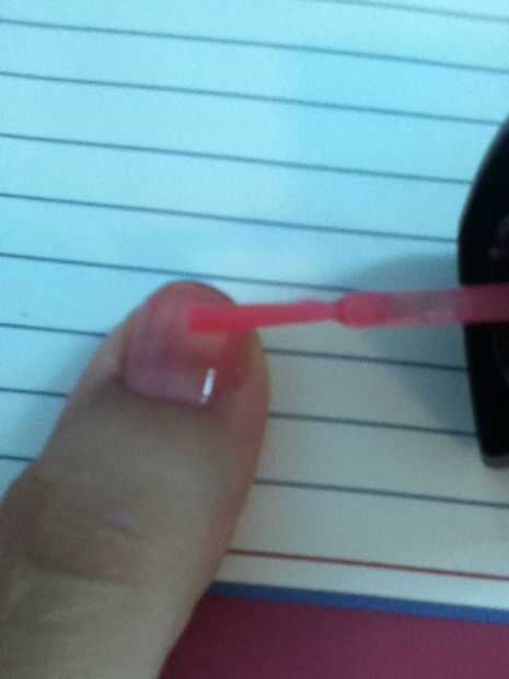 Pintar una o dos capas del pulimento rosa arraigo en cada uno de ustedes los clavos y deje seco.