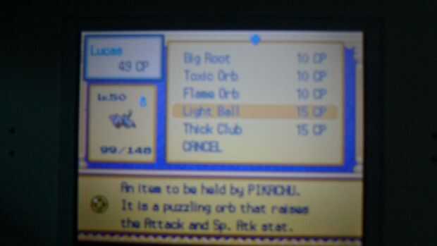 4. una vez que actualices, el elemento fila, alquiler alquilar la bola de luz este artículo aumentar su ataque y SP. Atk Stat. Y tratar de llevar un Cubone o Marowak una vez que se actualiza. Causa que es el Club espesa que dobla el ataque de Marowak o Cubone.