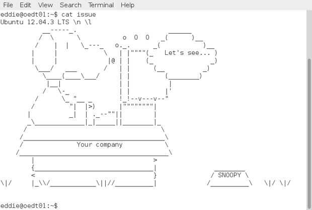 Mensaje del día si la pantalla ve al iniciar sesión en la línea de comandos. Generalmente si s corta y mundano, puede jazz encima de un poco más con unos gráficos de texto. Algunos de los ajustes de su ordenador están en el directorio/etc. Mensaje del día o motd generalmente reside en este directorio. Ahora si agregar tu mensaje o gráfico en el archivo motd regular, que generalmente consigue aniquilado. Lo que puedes hacer es agregar tus mensajes o gráficos en un archivo llamado /etc/motd.tail. Entonces cuando inicie una sesión en la verá tu mensaje. Tendrá que reiniciar para ver el Moard.