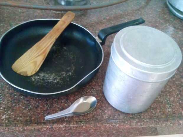 Botella de metal para recoger el ghee en-no sé si hay alguna significación especial o no, pero mantequilla de búfalo almacenada en botellas de metal parece no girar a rancio.