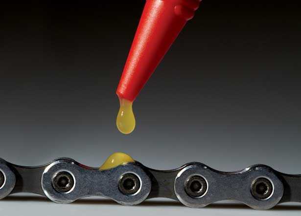 Lubricante de cadena: Correctamente lubricar la cadena ayuda a prolongar la vida de su transmisión. Aplique siempre aceite lubricante específico de bicicleta en una cadena limpia.