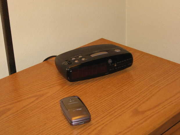 No confío en el despertador del hotel. Por lo general son inexactas de todos los invitados a tientas tratando de configurar la alarma. Tampoco soy fan de despertador. Puede olvidar que le llamemos. Yo uso el despertador de mi teléfono celular. Se restablece automáticamente al cambiar las zonas horarias o al horario de verano entra en acción.