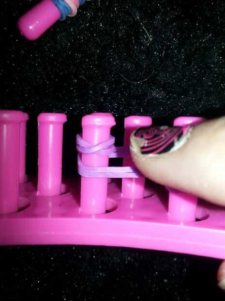 se necesita: un telar del arco iris, bandas de goma, un gancho y S ' clip o clip de 'c'Paso 1: Colocación de las bandas Hacer una figura 8 y dos bandas más sobre él.Paso 2: tejer Tire la segunda banda a un lado de la figura 8 entonces llevar al otro