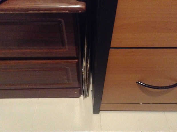Mis últimos consejos para usted es utilizar el espacio entre y la parte posterior de los muebles para almacenar cartón, paneles de madera o algo similar.