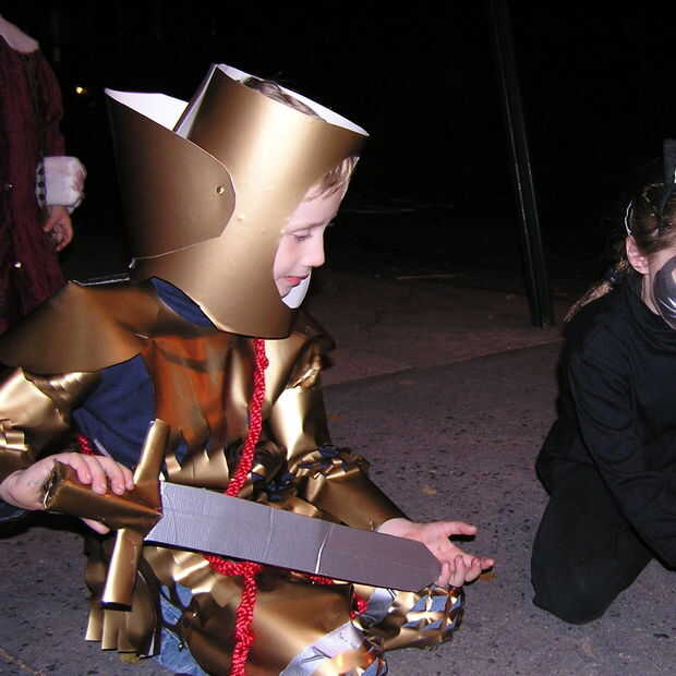 Para evitar quejarse ruidosamente o una negativa rotunda para fijar los pies en su creación, cualquier traje en base cartón no debe ir más bajo que las caderas. Para un traje largo flaco, como el clásico lápiz gigante, trate de hacer la parte inferior de tela (si está acoplada en la parte inferior de un aro pequeño mantendrá una forma circular bien definida). No sólo sería más fácil caminar, pero el niño sería capaz de sentarse y descansar de vez en cuando.