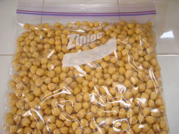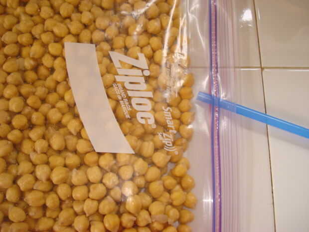estoy emocionada de compartir esta idea con ustedes porque yo no olvido a remojar otra vez mis frijoles y recurrir al uso de garbanzos enlatados! También ahorra dinero! El truco es remojar las 2 bolsas de garbanzos en tazones separados. Luego colar el agua a través de un colador y coloque uno de los granos en una bolsa de congelador, usando una paja para quitar el exceso de aire. Coloque la bolsa en el congelador hasta la próxima vez que hacen humus. A hacer hummus de la taza restante de frijoles. Si hacer hummus para los amigos y familia, previamente remojar un par de bolsas más para no llegar corto. Este método no ocupa espacio en el congelador y usted probablemente usará antes de que viejo. Habas no conservadas más! Si usted decide usar enlatado frijoles omitir el remojo e ir al siguiente paso. Al usar el humus congeladas Asegúrese de remojar algunas legumbres para sustituirlos en el momento de que hacer el hummus para que no se olvide.