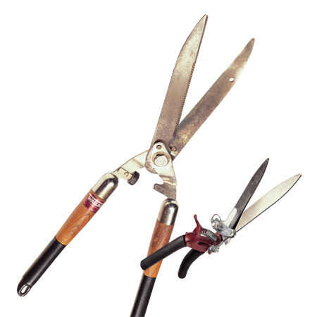 podaderas, cizallas para setos y pasto podadoras son todos similares a tijeras con dos hojas en contacto. Cortaron a través de vástagos, ramas, hierba, etc.. Son más eficientes cuando afilado, sin embargo es muy importante afilar a lo largo del bisel de cortes. Es muy importante que la herramienta se afila a lo largo de su superficie angular.