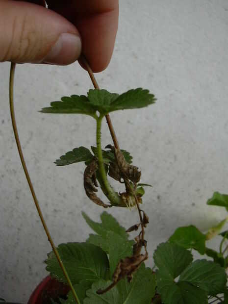 Fresas producen una rama especializada en el final del verano, que generalmente contiene células arraiga en sus conclusiones (ver foto). Esta células puede desarrollar raíces tan pronto como tocan el suelo. Para que pueda tomar esta terminaciones, enterrarlos y después de 2 o 3 semanas corte reproducción de la rama para que la nueva planta se convierte en independiente. De esta manera, además de tener más plantas, usted tendrá mejores frutos, porque las plantas jóvenes dan frutos más grandes, sabrosas.