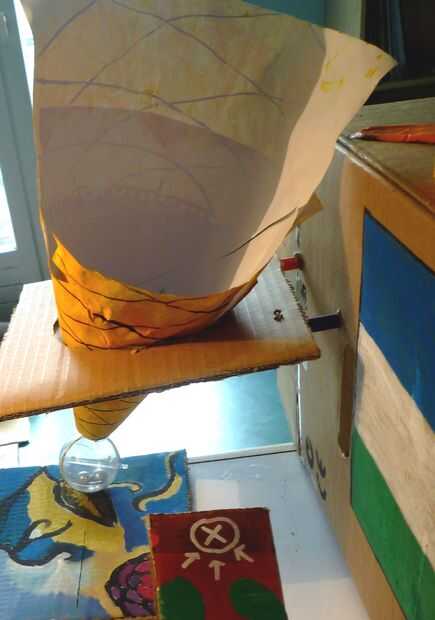 Ahora pueden orientar el cono de helado gigante... Hum el embudo en la dirección de la estatuilla que viene. Si el embudo se mueve, establecer su posición con cinta adhesiva.