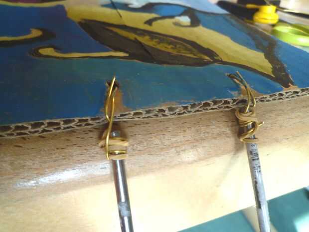 Necesitarás dos barras metálicas: debe ser rígido pero con un diámetro pequeño (hemos utilizado una una metros de largo y 4 mm ancha de la barra), cartón, bandas de goma y alambre metálico.