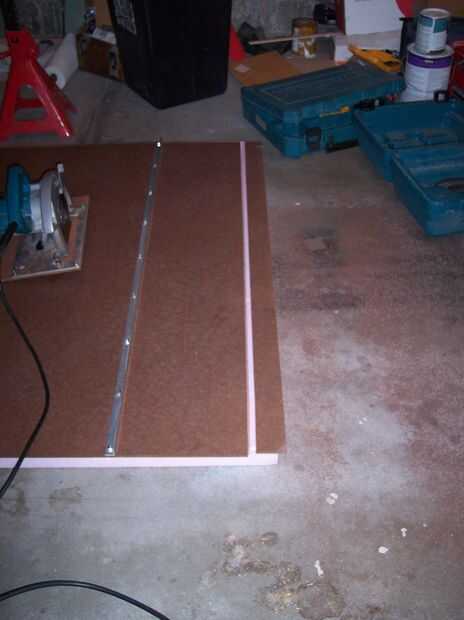 Ahora puede ejecutar la sierra, todavía unida al trineo en el lado opuesto para cortar la plantilla lejos del resto de la madera prensada.