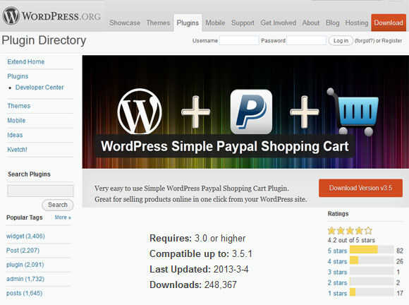 Simple carrito de compras PayPal es un plugin realmente simple que puede utilizarse para agregar un trabajo agregar a carrito de compras para cada página o según su requisito. Luz, rápido y fácil de usar, este plugin no tiene cientos de características y decenas de pasarelas de pago como otros plugins. PayPal sólo es compatible y es una gran opción para aquellos que sólo utilizan esta puerta de enlace y no tiene ningún uso para todas las funciones de adición en los plugins anteriores.