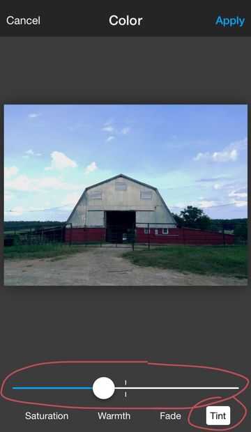 Luego ir a la sección que dice "tint" quiero poner la barra más a la izquierda porque es más verde y el verde realmente sale luego