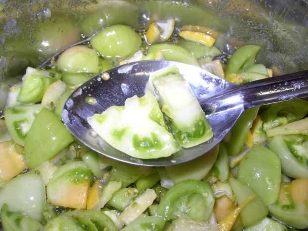Este año tuvimos una cosecha de tomates.  Problema era, pocos de ellos maduran en el tiempo. Puse algunos en estanterías en el almacén, por lo que puede madurar con el tiempo (que funcionaba bien), hice algunas en encurtidos (que es un muy buen uso,