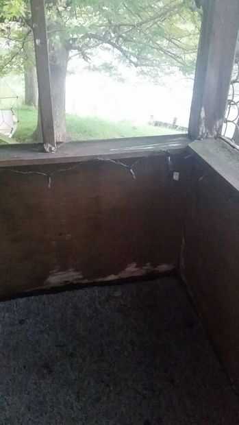 Es un lío. Daños por agua a todo lo que madera. Tienes que encontrar la manera de redirigir el agua. Mi cadena de lluvia poco no cortarlo.