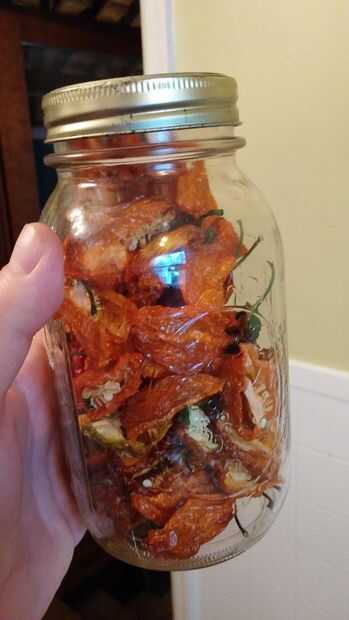 Guarde mis pimientos secos dentro de tarros de mason con nuevas tapas de conservas, sólo asegúrese de que los frascos están limpios y completamente secos al utilizar. También se puede almacenar en ziplock bolsas de tamaño galón y cuarto de galón, mantienen desde hace varios años, si no indefinidamente.