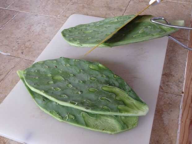 - Sostener el cojín en su base y raspar con un cuchillo romo para quitar espinas y gloquidios. O mantenga a fuego para quemar los bits espinosos.