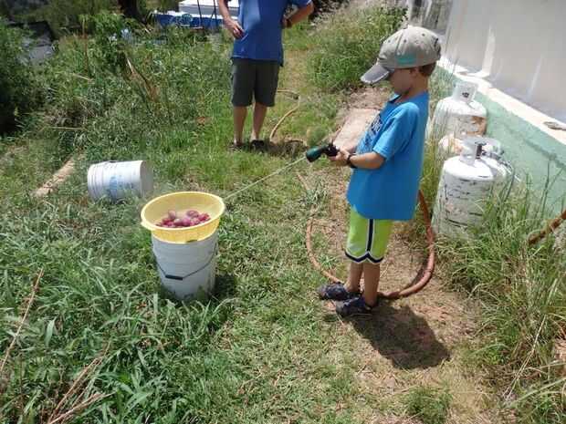 4. Ponga aproximadamente una pulgada de agua en una olla grande y agregue la fruta.