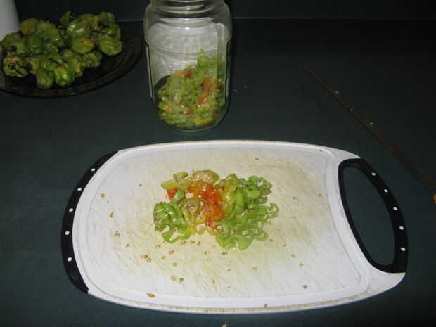 Algunas personas como allá todo pimientos como de mina cortada en anillos y llenar el tarro de la salmuera.