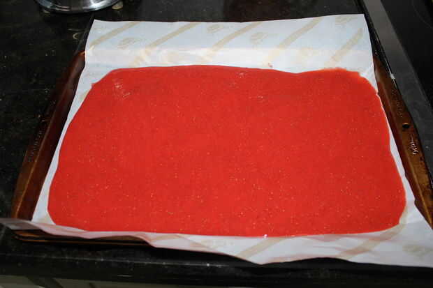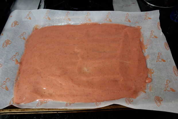 -Línea de la bandeja del horno con su papel y esparcir la mezcla de manera uniforme (esto es una parte crucial y afectan el producto final).