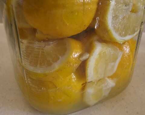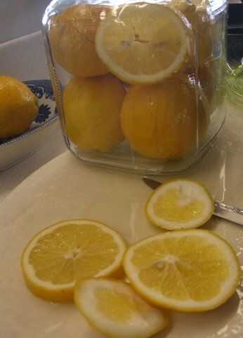 limones el Salar es una tradición de Medio Oriente solía conservar limones sin refrigeración, y el condimento resultante es totalmente comestible, incluyendo la corteza.   Servir con cordero, pollo, pescado, cous cous o pasta; sin embargo, también en