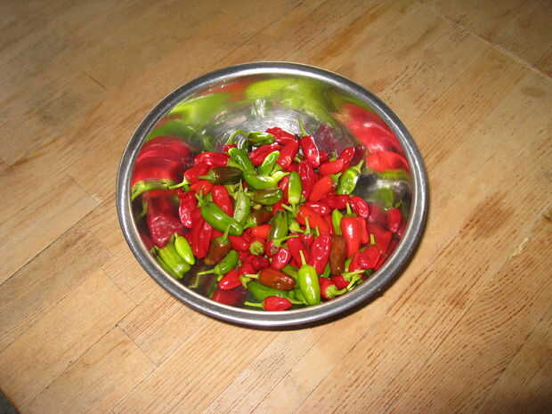 Cuando el tiempo comenzó a recibir frío escogí todos los pimientos de la planta. Había izquierda los tallos, pero les lavan cuidadosamente.