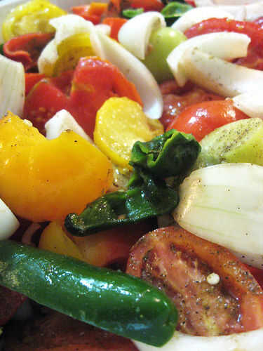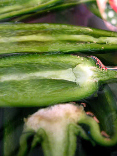 Pimientos: Cortar por la mitad y retire las semillas.