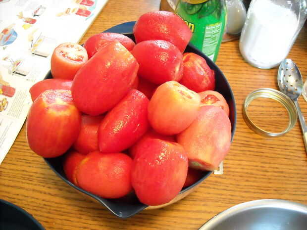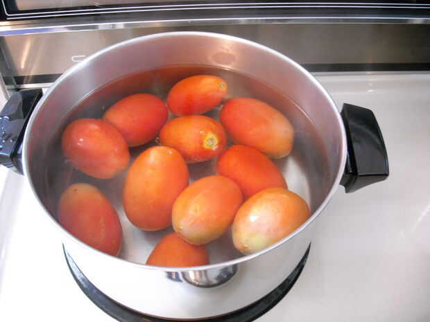 Pelar los tomates, la piel debe tirar justo al lado con un cuchillo de cocina.