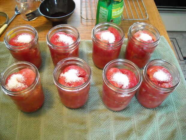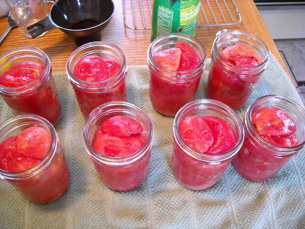 Después el paquete en tomates como muchos como usted puede. Yo generalmente los embalamos en capas - lado de la semilla hacia abajo.