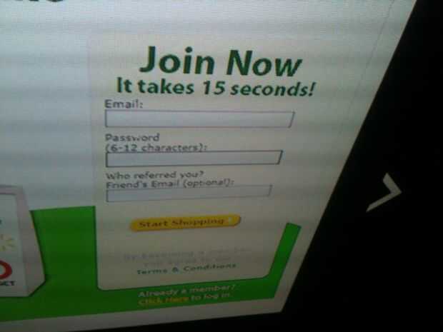 bien después de que hizo clic en mi enlace estará en la Página Web de ebates. Cuando me inscribí primero realmente tenían una promoción en donde cuando pasar mi primera 25$ tengo una tarjeta de 10 regalo a Walmart o a una tienda de mi elección así que fue genial desde el principio. pero cualquier forma una vez en la vista sólo encuentra el signo caja y rellenarla. (esto toma unos 10 segundos) también me gustó cómo no necesitan ninguna información de usted en absoluto a diferencia de otros sitios que tu historia toda la vida. todo lo que necesita llenar con ebates es su correo electrónico, nombre, paypal si esa es la manera que desea pagar o su dirección si desea que el dinero enviado en el correo.