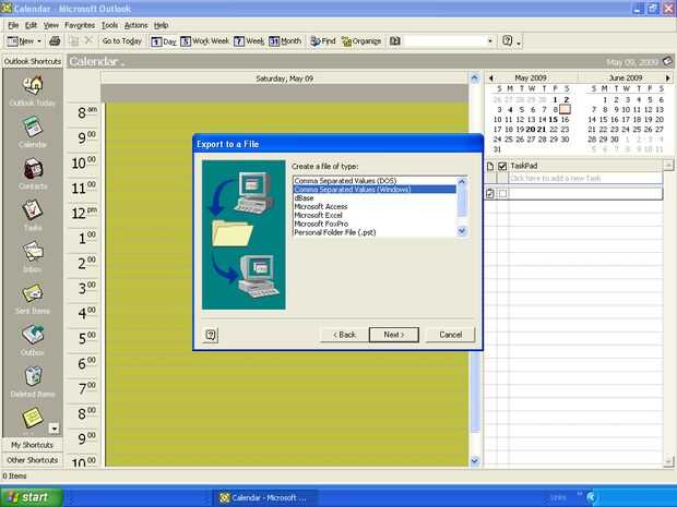 Consigue el calendario de Microsoft Outlook 2000 a ipod sin software (2 / 3 paso)