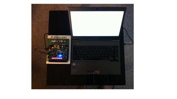 Agarra los 4 SDMONexys de Digilent y conectarlo al puerto USB de la computadora. Encienda la SDMONexys 4. Hay una demo de prueba de muestra (parpadea LED y Display de siete segmentos se muestran 1 a 5). Haga clic en siguiente.