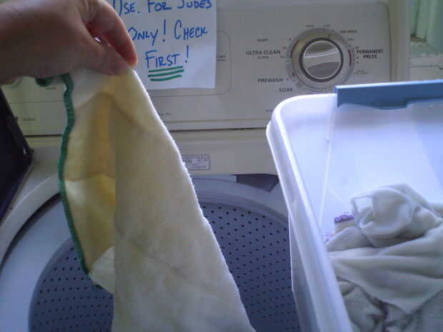 -Tome sus pañales (no agregue cubre el pañal) y añadir a la lavadora, intenta repartirlos uniformemente alrededor.