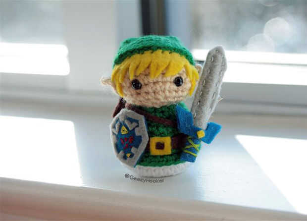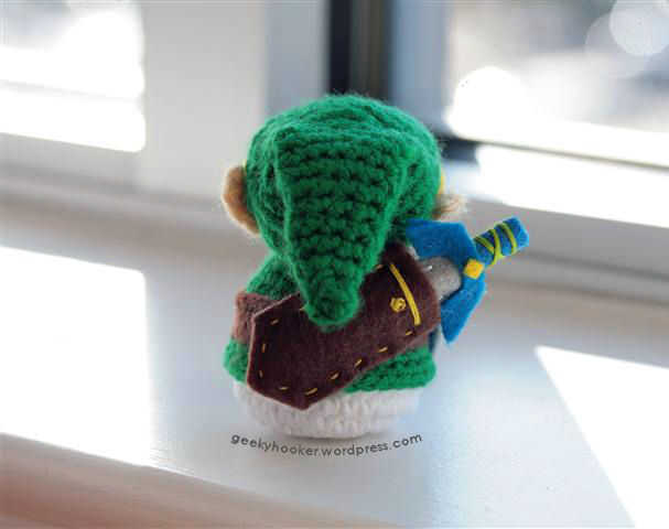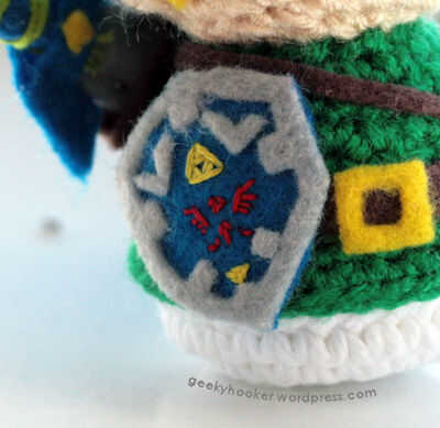 Tomé la cabeza básica y patrones del cuerpo además de las orejas de "Nosferatu" y había cambiado hasta hacer Link de Legend of Zelda. Con hilo y paciencia, podrás hacer un lil' héroe dispuesto a salvar la tierra de Hyrule (oh sí y para salvar a esa princesa molesta también)!