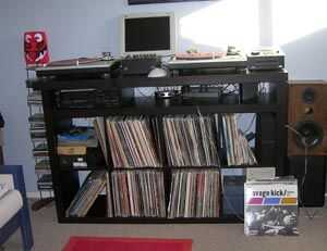 Aquí es un banco modular de TV consola-, que hecho de componentes IKEA, inspirados en las mesas de madera-top moda con marcos de acero que se encuentran en todas las tiendas de diseño caro estos días.Como la pared de la TV es realmente larga, he dise