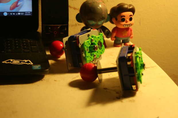 El joystick izquierdo se utilizará para los frenos. El joystick derecho se utilizará para el acelerador. Instale los joysticks y alinearlos para que los polos están cayendo por los agujeros. Permiten los palillos mover en el para arriba y abajo dirección. Pegue los palillos sobre el tablero una vez que ha encontrado el punto dulce. Conectar los joysticks según el esquema arriba.