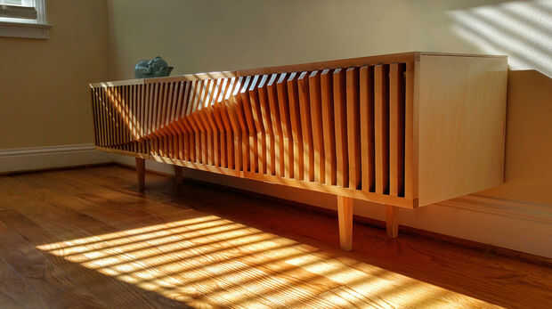 Diseñé esta consola de TV para mantener a todos los periféricos fuera de la vista. La mayoría de las cosas que va en él necesita ventilación y conectividad remota IR, por lo tanto, el diseño abierto / a la plancha que elimina la necesidad de se maneja así.