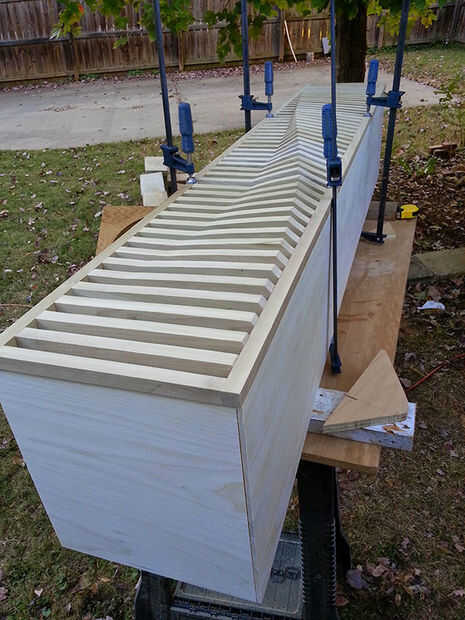 Prueba de montaje de los paneles frontales en la caja con abrazaderas para hacer ajustes finos.