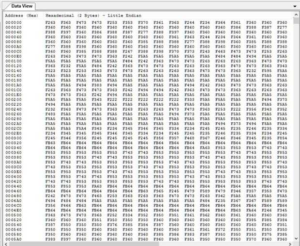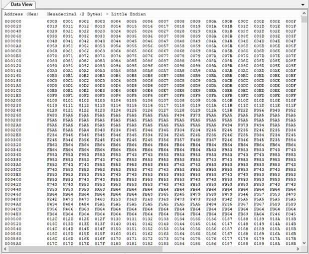 En el video, el emulador de MCU se utiliza para alimentar la salida de un contador de 16 bits como una fuente de datos entrantes de la MCU y esta información se transfiere a la zona de 300 x 200 de la capa 0. Usted puede encontrar imágenes de datos antes y después de la operación de DMA.