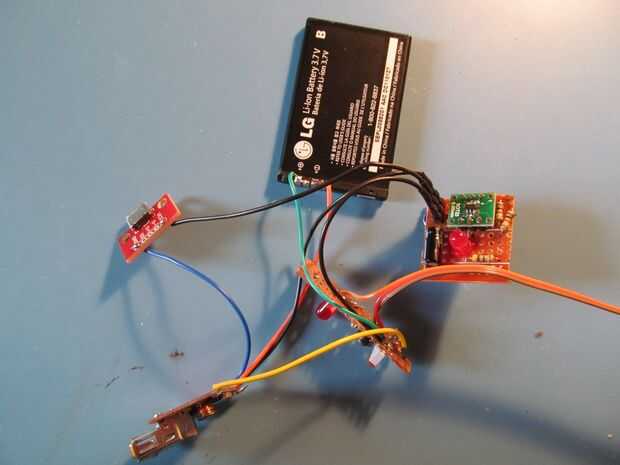2. Conecte el terminal positivo de la batería a VBAT en el circuito de carga. También conectar a un terminal en el interruptor de alimentación.
